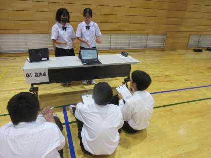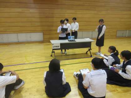 体育館で事業所ごとに、1学年の後輩たちの前で発表です。