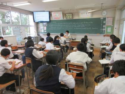 (写真下:1B 英語 英文を聞いて、発音の確認です)