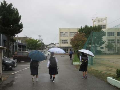 雨降りとあいさつ運動 公開日 2024/10/09 更新日 2024/10/09 最近の水中の様子 10/8(火) 本日も雨の朝となりました。 「風が強いですー!」 「風で傘が壊れそうでしたー!」 「寒いですー!」 朝晩は気温が低くなってきました。体調を崩さないよう、注意が必要です。 生徒玄関では、3Aのみんなが、あいさつ運動に取り組んでくれました。