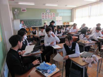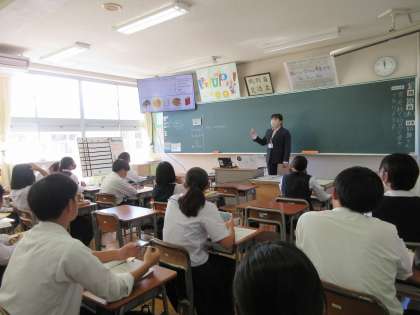 現在、本校で教育実習をされている先生が3Bで研究授業を行いました。「過去分詞を用いた後置修飾を使って、好きな人物やグループを紹介しよう」という学習課題で、生徒たちは熱心に英語でのやり取りや表現に挑戦していました。