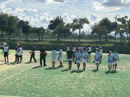 男子ソフトテニス部は、始めて間もない1年生部員が多い中、団体戦も個人戦もベスト8まで勝ち進むことができました。出場した選手は仲間の声援を受けて、最後まで全力でプレーしました。新人大会で学んだことを今後の練習につなげていきます。