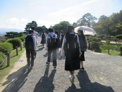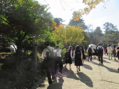 2学年 金沢校外学習 その2 兼六園 公開日 2024/10/19 更新日 2024/10/19 第2学年 (写真上:石川門が見えてきました) (写真中:クラス写真を撮影した後、班別学習が始まりました。兼六園に向かいます) (写真下:兼六園内を散策しています) 「まぶしいー!」 「暑いー!」 「景色がキレイー!」まだまだ元気です。
