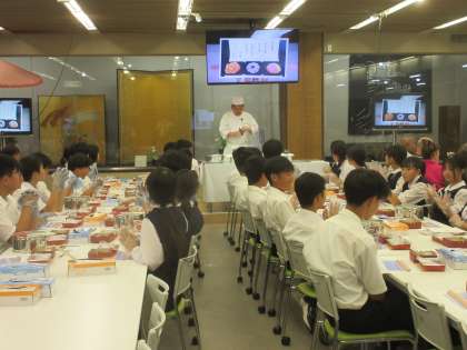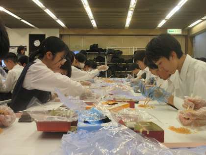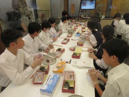 (写真上:みんな石川健観光物産館に集合し、和菓子作り体験をしました)