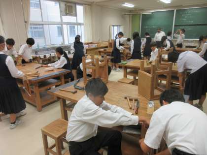 (写真下:1B 技術 木材加工)