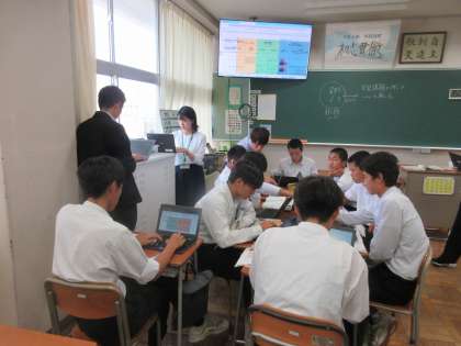 (写真上:3A 社会「世論とマスメディア」をもとに、スプレッドシートで意見交換をしました。)