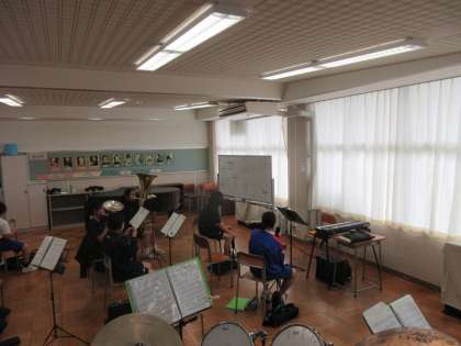 休日の部活動 公開日 2024/10/28 更新日 2024/10/28 最近の水中の様子 10/26(土) 本日も朝から水中生は部活動を頑張っています。 (写真上:吹奏楽部 11/1(金)の学習発表会に向けて合奏です) (写真中:男女バドミントン部 合同で練習に励みます) (写真下:陸上競技部 晴れているのでグラウンドで活動します)