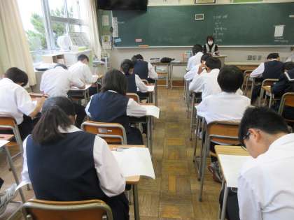 10/30(水)の1限に、2学年は数学の単元テストに取り組みました。