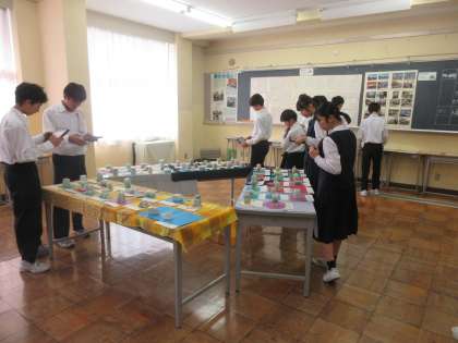 「芸術の秋」本番! その5 展示見学 公開日 2024/11/01 更新日 2024/11/01 最近の水中の様子 (写真上:3年美術「石影〜抽象造形〜」) (写真中:理科の自由研究です) (写真下:2年美術「空想の世界×モダンテクニック」)
