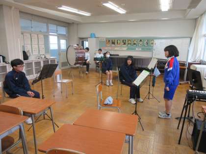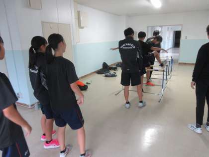 雨の休日の部活動 その2 公開日 2024/11/06 更新日 2024/11/06 最近の水中の様子 (写真上:吹奏楽部 本日の練習の振り返りをしています) (写真下:陸上競技部 本日は雨なので、屋内でハードル練習です)