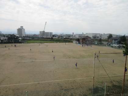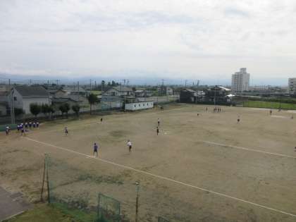 朝は小雨でしたが、午前中は晴れてきました。グラウンドでソフトボールです。