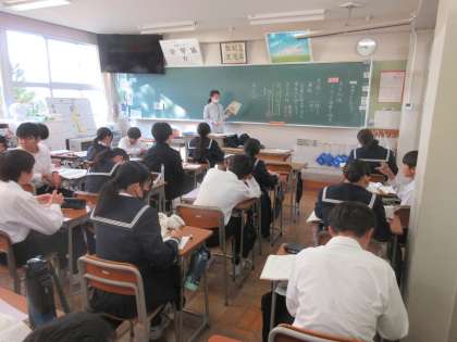 2学年 授業風景 公開日 2024/11/14 更新日 2024/11/14 第2学年 2学年のようすです。 (写真上:2A 国語 「『平家物語』弓流しの場面を読む」) (写真下:2B 保健体育 柔道着のつけ方を、映像で見ています)
