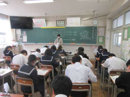 明日の1学年期末考査は、1限 理科 2限 国語 3限 社会 です。