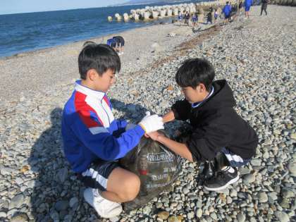 3学年 海岸清掃(その3) 公開日 2024/11/25 更新日 2024/11/25 第3学年 卒業プロジェクトの第2弾として、海岸清掃を行いました。想像以上にごみが落ちており、生徒たちは限られた時間内で熱心に回収していました。生徒たちが回収したごみは、軽トラックの荷台を埋め尽くすほどの量になりました。 本日は天気に恵まれ、海岸から綺麗な立山連峰を望むことができました。これからも美しい水橋の景観を守っていきたいですね。