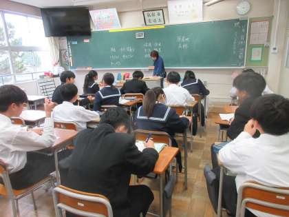 (写真上:1A 家庭科 4教科テストの答案を返し、解説をされました)