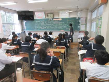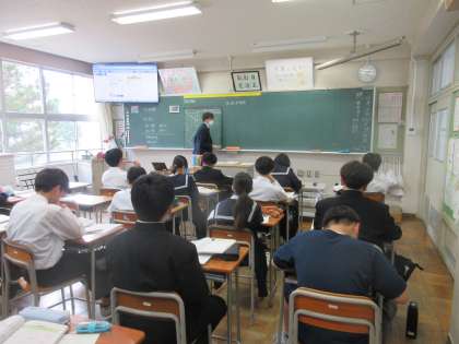 1学年 授業風景 公開日 2024/12/04 更新日 2024/12/04 第1学年 1学年のようすです。 (写真上:1A 数学 「図形の回転移動」) (写真下:1B 英語 「主語+be動詞+動詞ing」)