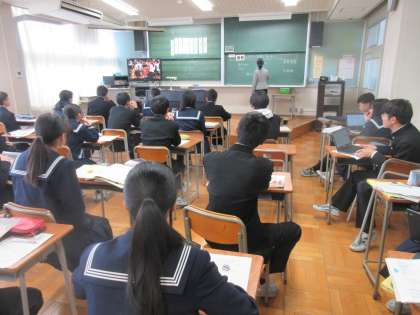 (写真下:2B 音楽 「絃楽器の音色を聞き比べてみよう」)