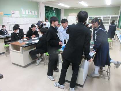 1学年 授業風景 公開日 2024/12/13 更新日 2024/12/13 第1学年 12/12(木) 窓の外は雪が舞っていますが、教室は暖かく保たれています。 (写真:1年 理科「力の大きさと、ばねののびの関係」仲良く実験中)