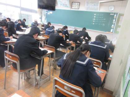 3学年 学力調査 公開日 2024/12/16 更新日 2024/12/16 第3学年 12/16(月) 3学年は学力調査に挑んでいます。 写真は3限、理科のテストです。 (写真上:3A) (写真下:3B)