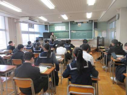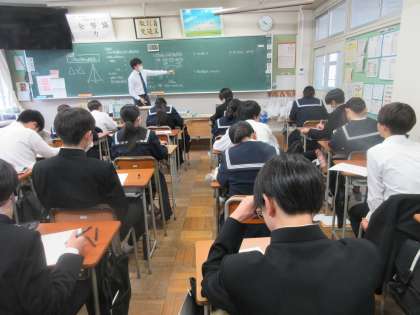 2学年 授業風景 公開日 2024/12/18 更新日 2024/12/18 第2学年 2学年のようすです。 (写真上:2A 数学 二等辺三角形の定理の証明です) (写真下:2B 音楽 「音色」を聴き取ろう)