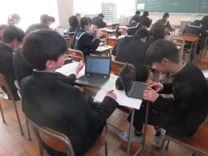 3学年 授業風景 公開日 2024/12/23 更新日 2024/12/23 第3学年 3学年のようすです。 (写真上:3A 英語 プリントで英文問題に取り組んでいます) (写真下:3B 社会 テーマを決めて課題に取り組んでいます)