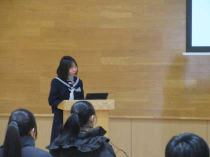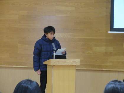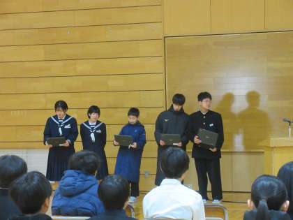 (写真上:学年生徒会から、クラスごとに2学期の反省)