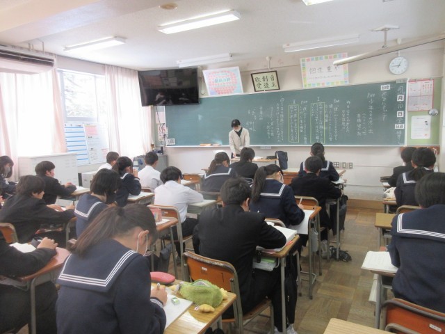 1学年 授業風景 公開日 2025/01/10 更新日 2025/01/10 第1学年 1/10(金) 朝の雪かきを終え、1学年が授業に取り組んでいます。(写真上:1A 英語 ALTの先生が発音を確認してくれました)(写真下:1B 国語『少年の日の思い出』