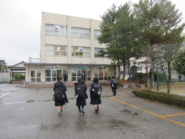 本日は雨のため、2Bが生徒玄関で「あいさつ運動」に取り組んでくれました。