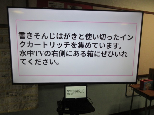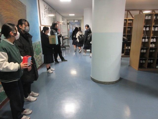 生徒会執行部も、書き損じハガキと使用済みカートリッジの回収運動を呼び掛けてくれました。