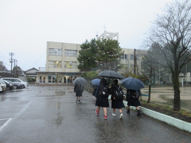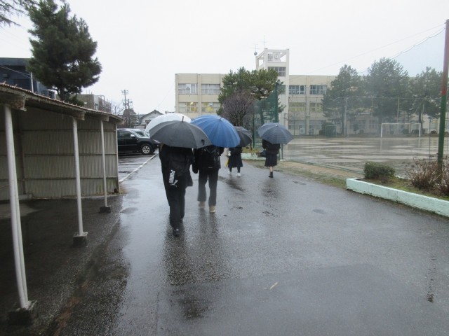 大雪の心配もある中、子どもたちは傘をさして登校してきました。