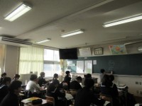 (写真下:3B 音楽 卒業の歌の楽譜を読んでいます)