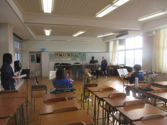 (写真上:吹奏楽部 音階練習に続いて曲練習です。ひたすら合わせる、合わせる!)