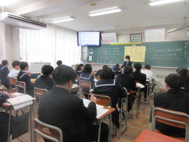 (写真上:1A 英語 動画を見ながら発音練習です。だいぶ上達してきました)