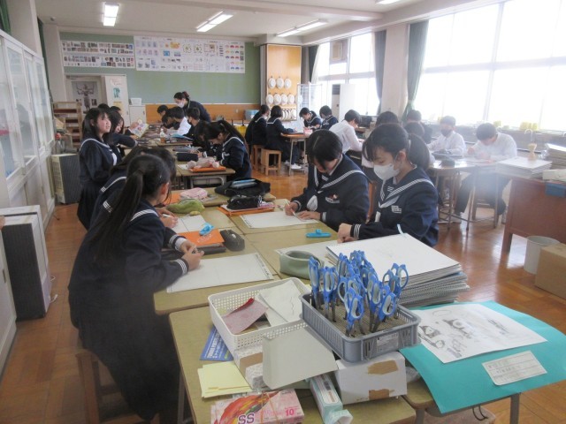 (写真下:1B 美術 「『日本の美』を伝えるデザイン」)