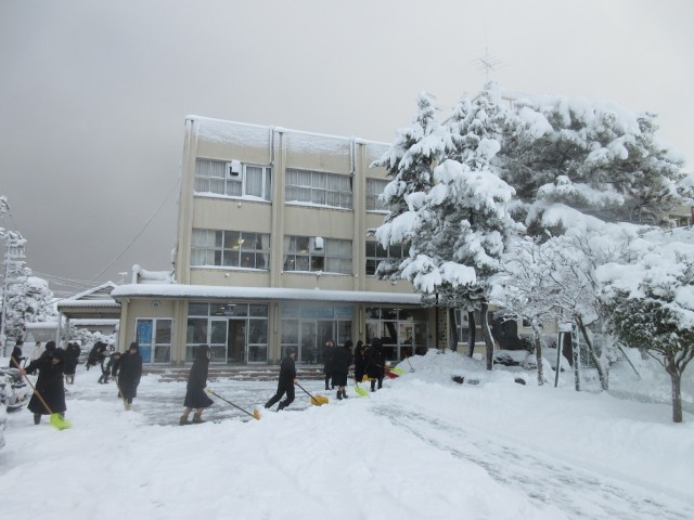 人気のない早朝の教室は寒いですが、本日も朝から1Bの子どもたちが除雪をしてくれました。