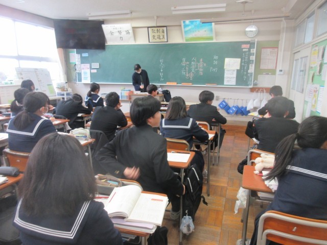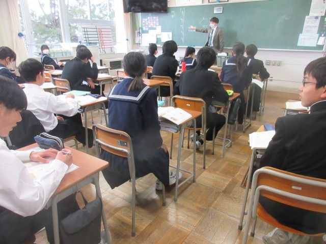 (写真下:2B 数学 説明を聞いて、ワークに取り組みました)