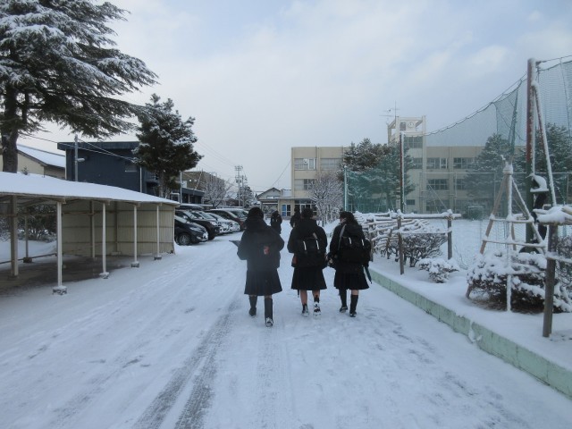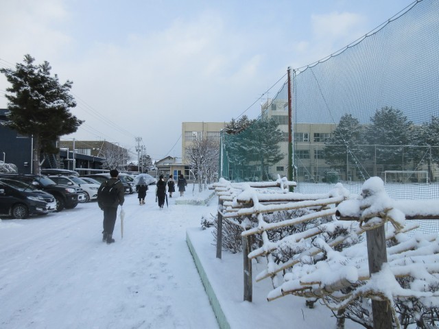 2/19(水) 昨日に続いて本日も、雪の空の下、子どもたちが登校してきました。
