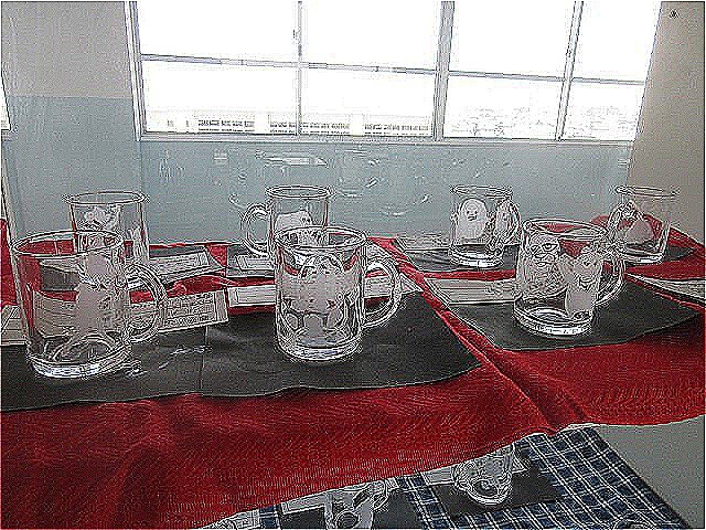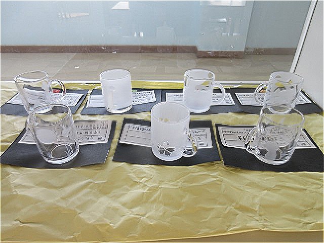 3学年 美術作品 公開日 2025/02/19 更新日 2025/02/19 第3学年 美術室前に、3学年の美術作品「サンドブラスト」が展示されました。実にアイディア豊かなデザインが、透明なグラスに転写されて、通る人の目を惹いています。