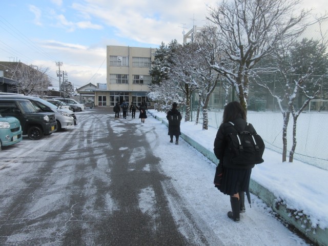 登校してくる子どもたちの足どりも、いつもより慎重です。