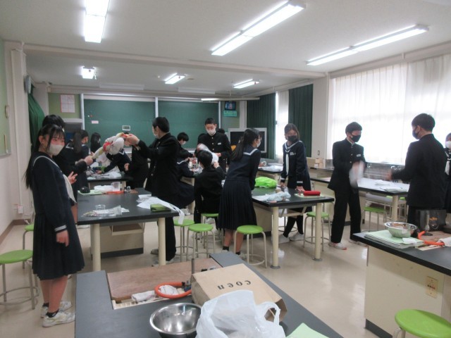 3学年 授業風景 公開日 2025/03/05 更新日 2025/03/05 第3学年 3学年のようすです。 (写真上:3A 理科 「凝固点降下」の実験です。氷に塩を入れ、冷やします )(写真下:3B 数学 静かにプリント学習に取り組んでいます)