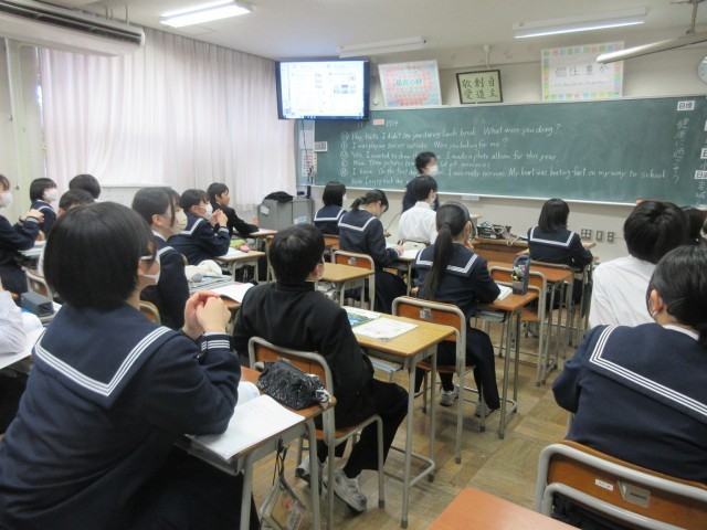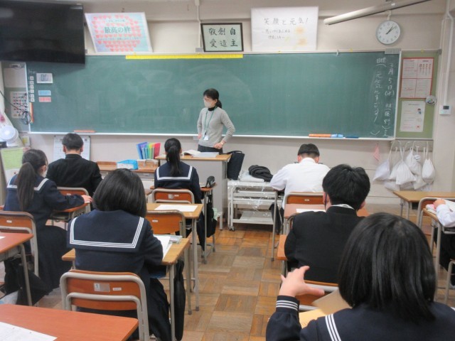 (写真上:1A 国語 授業の前に、先生からの説明を聞いています)