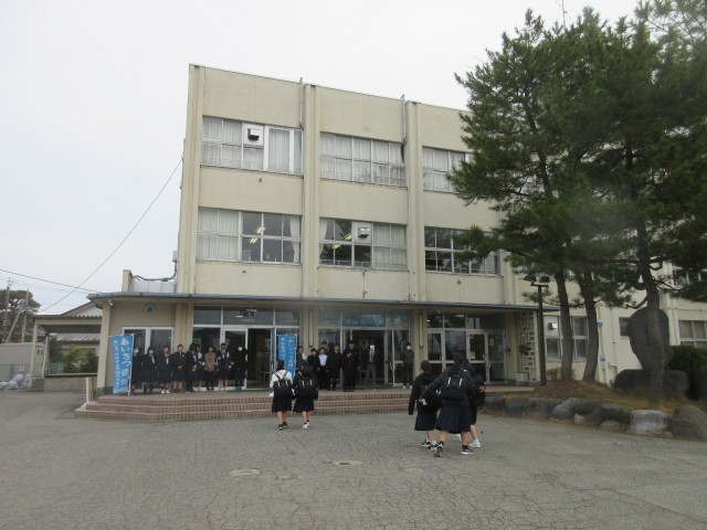 生徒玄関では、1Bの子どもたちが「あいさつ運動」に取り組んでくれていました。