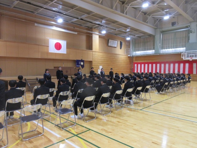 3/12(水) 明日の卒業式に向けて、全校で練習等を行いました。