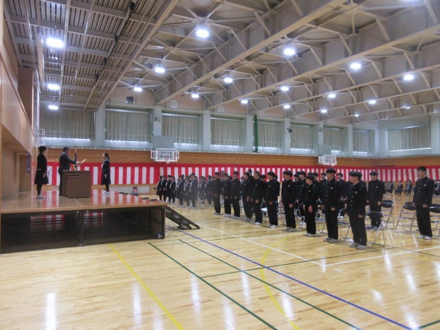 (写真下:3学年修了証授与式 校長先生から代表生徒に、修了証が手渡されました)