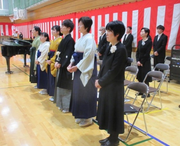 (写真下:たくましく成長した卒業生を見守る、学年の先生方の温かいまなざし)