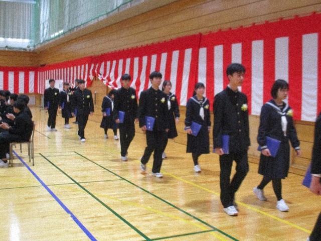 (写真下:卒業生退場)