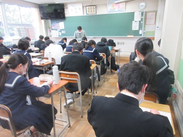 教室では、2学年が静かに朝自習のプリントに取り組んでいました。