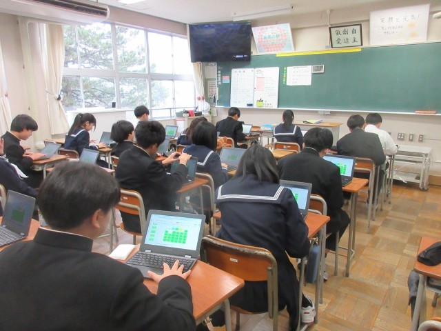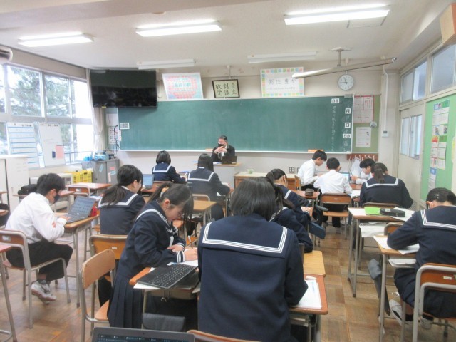 3/19(水) 教室は暖房が効いて暖かい中、1学年が学習に取り組んでいます。