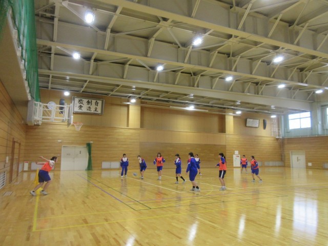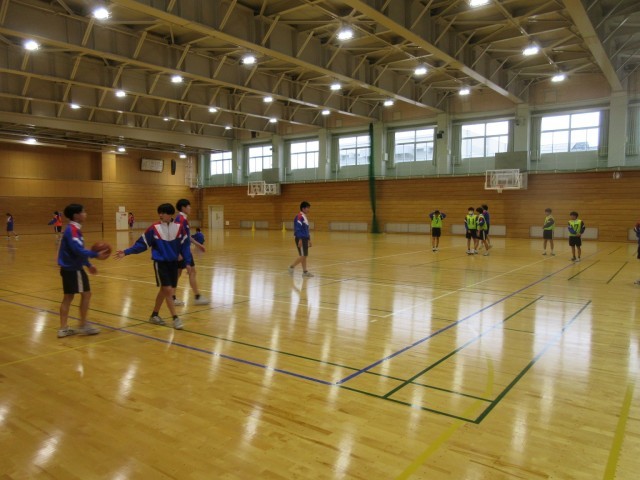 (写真上・中:2A 体育 男女ともにバスケットボール 元気な声が響いています)