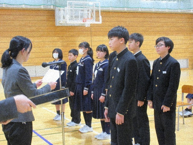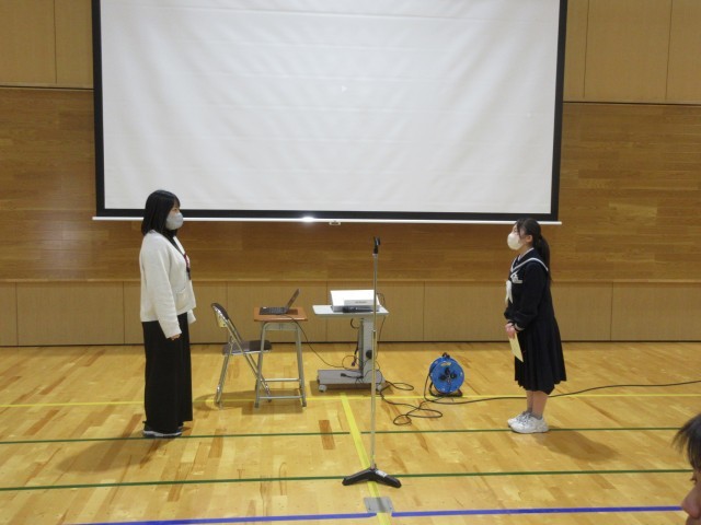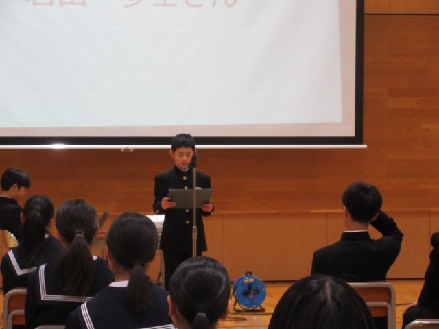 1年生は6時間目に学年集会を行いました。各クラスの1年間の振り返りや学級MVPの発表、学年の先生の話など、盛りだくさんの1時間でした。また、最後は1年生から先生方へ感謝の気持ちを伝え、体育館中が温かい雰囲気になりました。