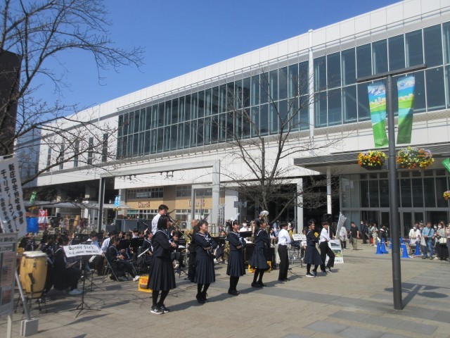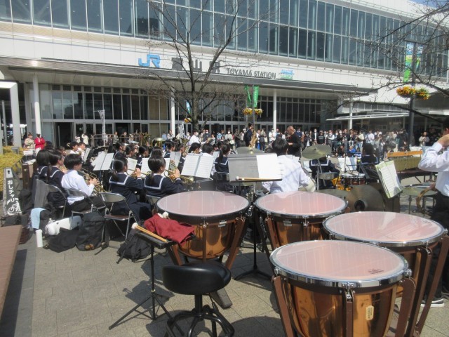 3/23(日) 富山駅前で、新庄中学校の吹奏楽部がチャリティコンサートを開催しました。